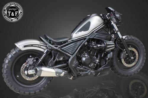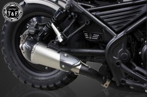 ・純正サイレンサーよりスリムでスタイリッシュなデザインが特徴で、レブル250のシルエットを引き締め、より洗練されたカスタムスタイルを演出します。