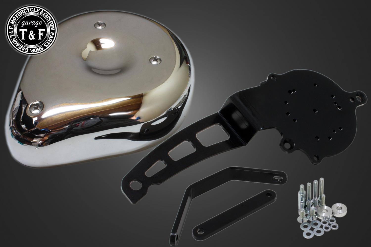 ・本来、レブル250のエンジン横にはエアクリーナーは装着されていませんが、このダミーエアクリーナーを取り付けることで、サイドビューが一気に迫力あるカスタムスタイルに変身します。