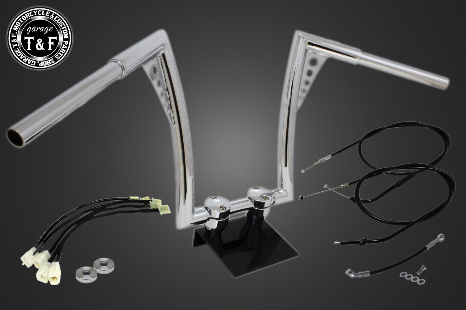 ハンドルと、適正サイズのアクセルワイヤー、クラッチワイヤー、ブレーキホース、延長ワイヤーハーネスをまとめてご用意しました。追加購入や長さ選びの心配がなく安心してハンドル交換をお楽しみいただけます。