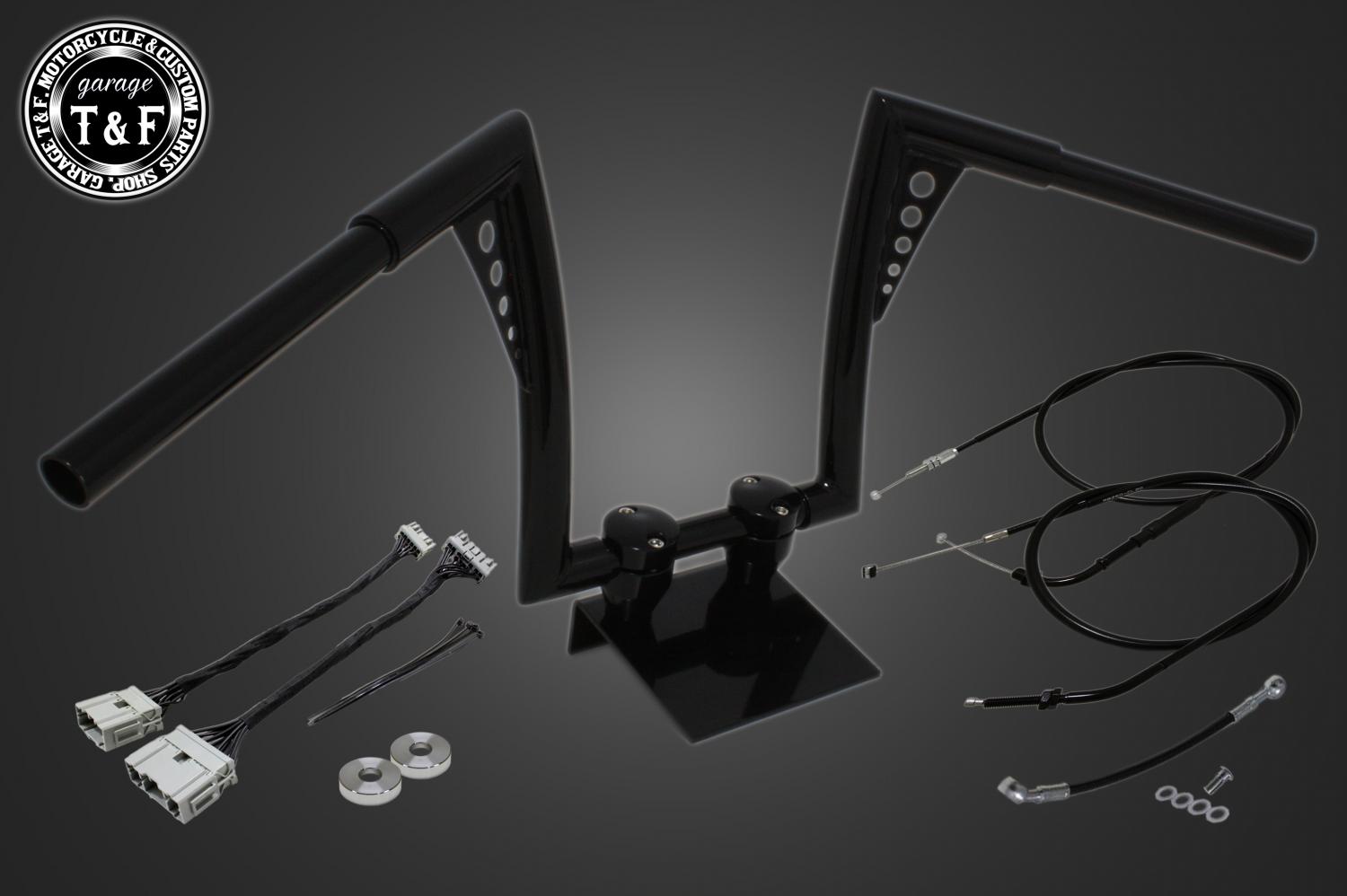 ハンドルと、適正サイズのアクセルワイヤー、クラッチワイヤー、ブレーキホース、延長ワイヤーハーネスをまとめてご用意しました。追加購入や長さ選びの心配がなく安心してハンドル交換をお楽しみいただけます。