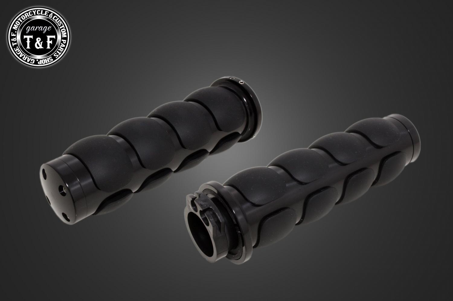 ・ブラックボディとマットな質感のラバーが織りなす重厚なデザイン、操作性にも優れたハイエンドなカスタムグリップです。