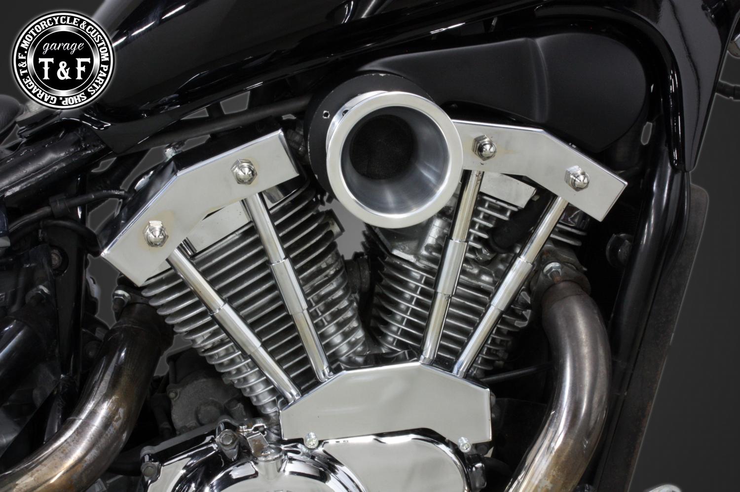 スティード400 ファンネル(ポリッシュ)&プッシュロッドカバーSET
