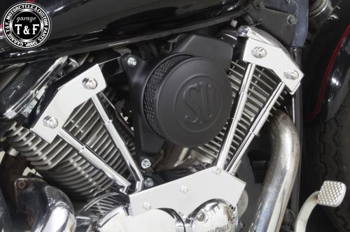 ドラッグスター1100 SUエアクリーナー(マッドブラック)&プッシュロッドカバー(メッキ)SET