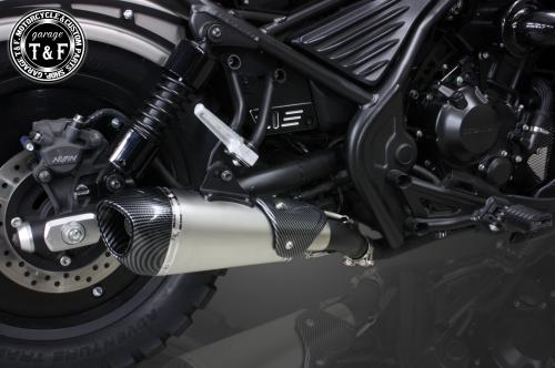 ・純正サイレンサーよりスリムでスタイリッシュなデザインが特徴で、レブル250のシルエットを引き締め、より洗練されたカスタムスタイルを演出します。