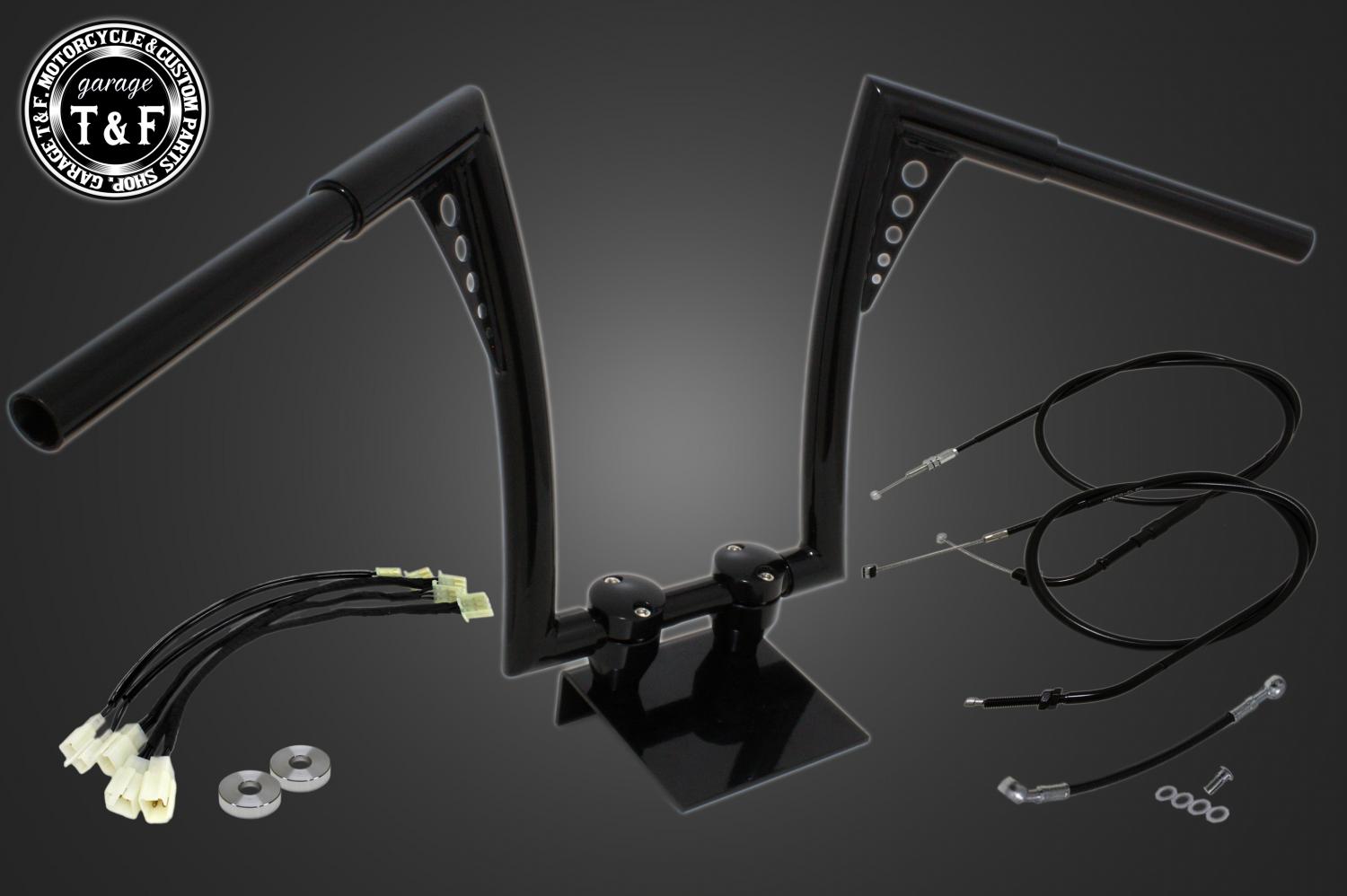 ハンドルと、適正サイズのアクセルワイヤー、クラッチワイヤー、ブレーキホース、延長ワイヤーハーネスをまとめてご用意しました。追加購入や長さ選びの心配がなく安心してハンドル交換をお楽しみいただけます。
