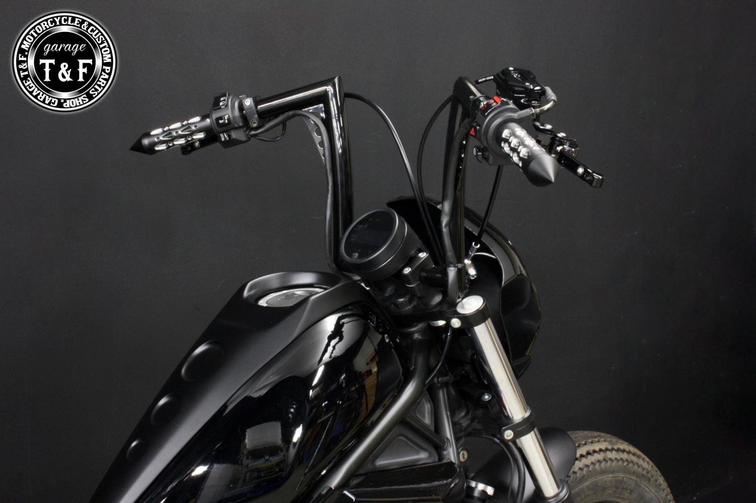 ・ハンドルの太くなっている箇所はクランプパーツ(ハンドルクランプ式ミラーやクランプ式メーターなど)が適合しない場合がございます。
