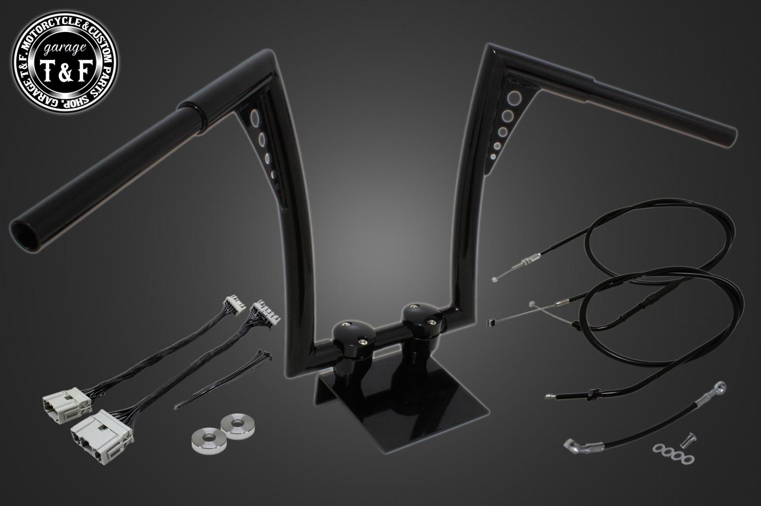 ハンドルと、適正サイズのアクセルワイヤー、クラッチワイヤー、ブレーキホース、延長ワイヤーハーネスをまとめてご用意しました。追加購入や長さ選びの心配がなく安心してハンドル交換をお楽しみいただけます。
