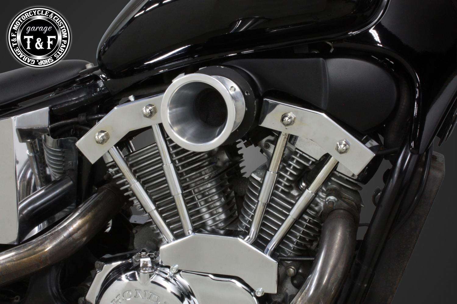 スティード400 ファンネル(ポリッシュ)&プッシュロッドカバーSET